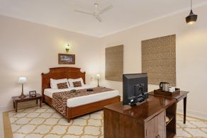 As one of the best hotels in Ranthambore, Hotel Dev Vilas promises two luxe categories of rooms - Standard Suites and Pool Side Suites. The rooms are phenomenally designed with contemporary amenities so that you are treated to nothing but the best. All materials and craftspeople have been sourced locally, thus ensuring the participation and benefit of the local talent.